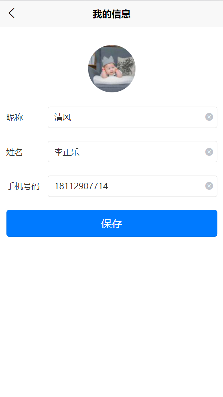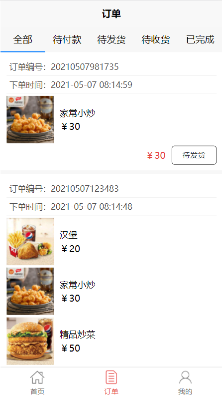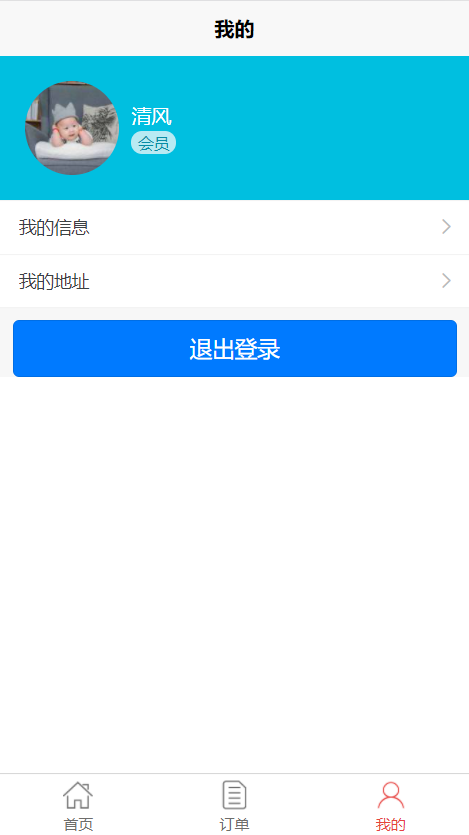 个人中心显示我的信息(可编辑),我的订单(包含取消,支付,完成,评价),我的地址