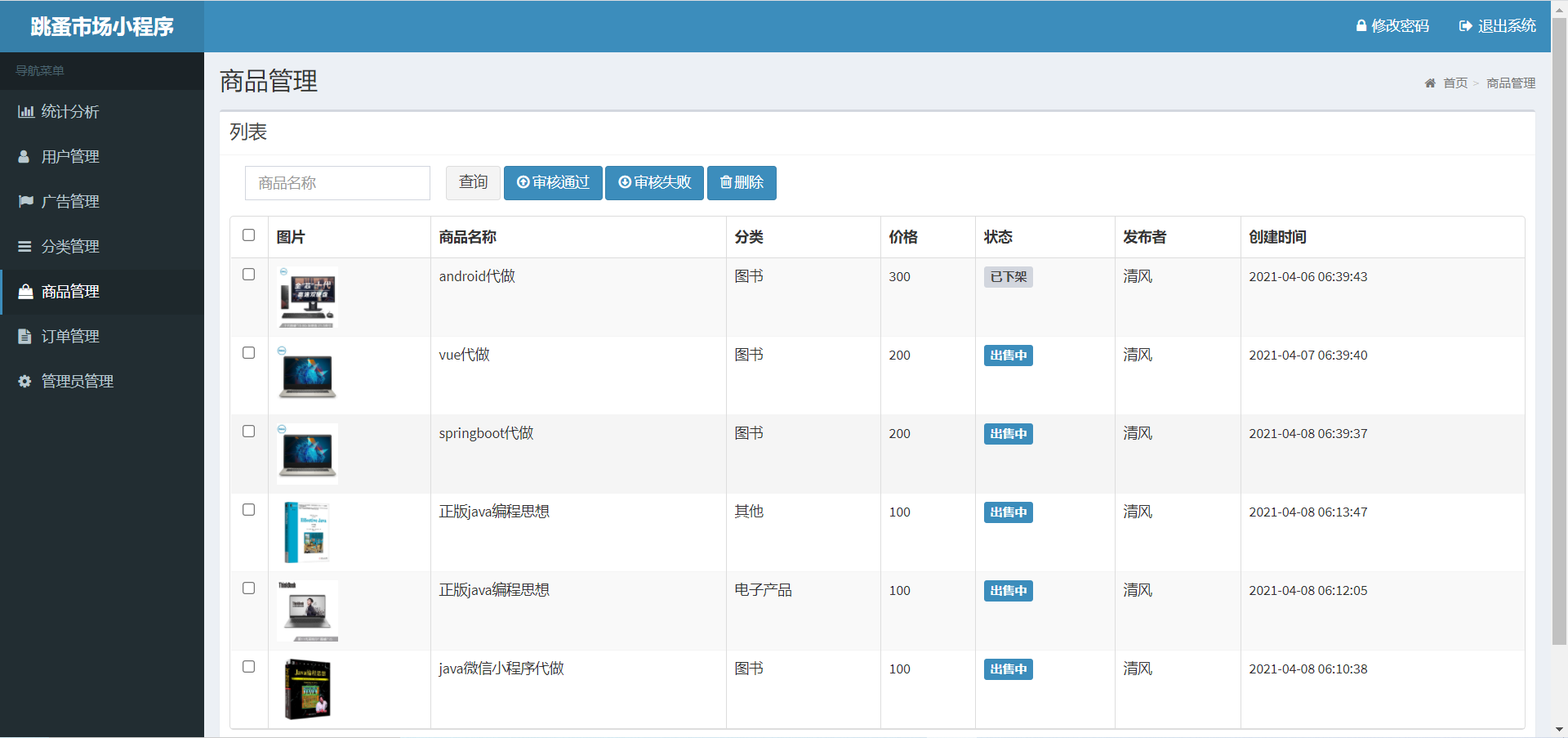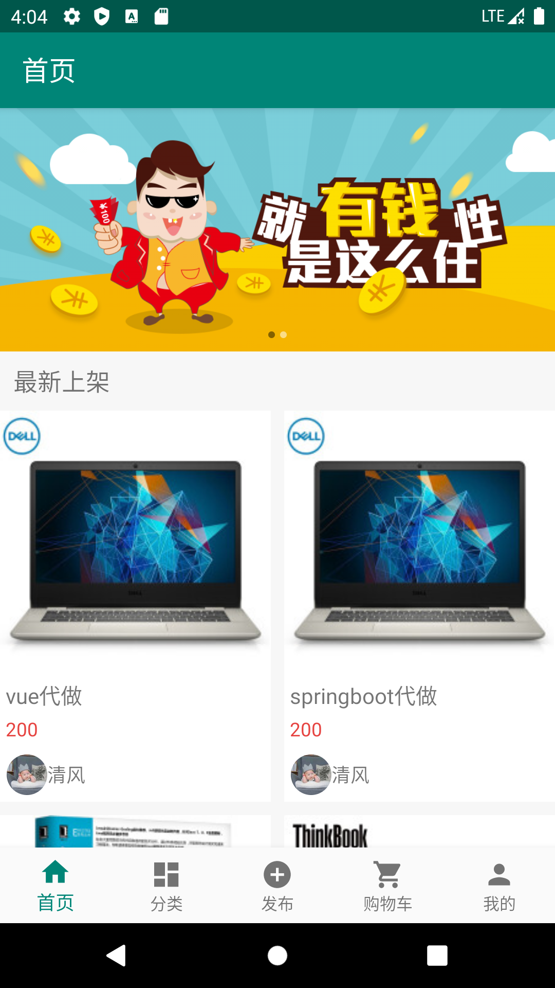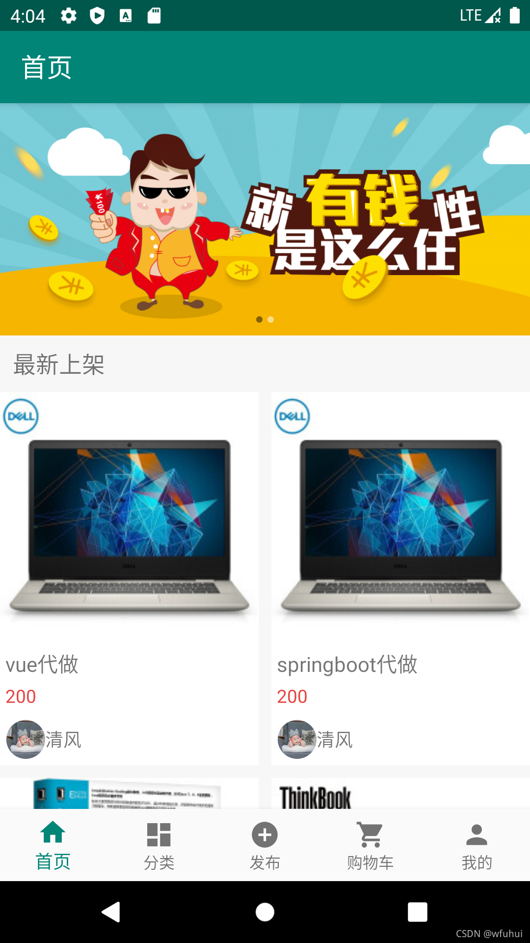 首页显示搜索商品,轮播图,商品分类,最新上架商品(可带推荐算法)