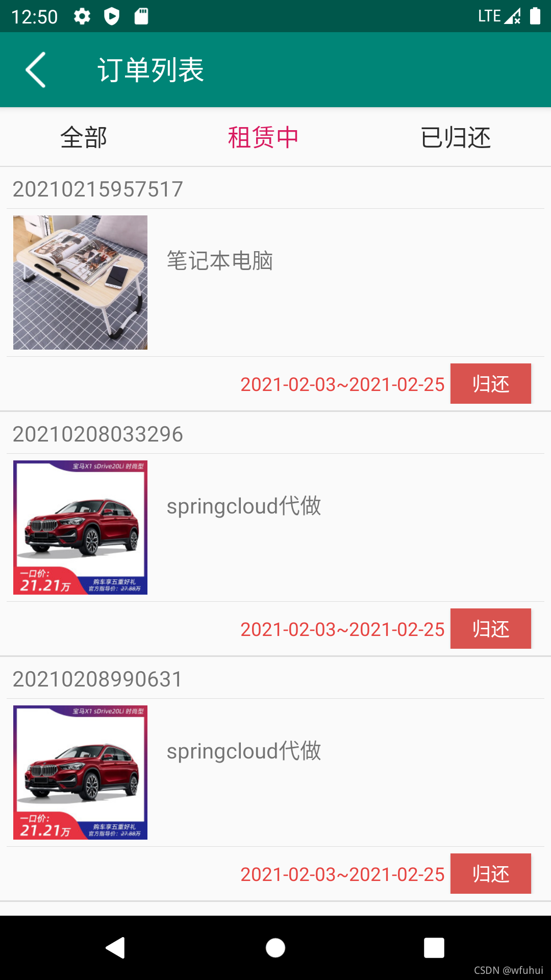 个人中心显示我的信息(可编辑),我的订单(包含支付,归还)