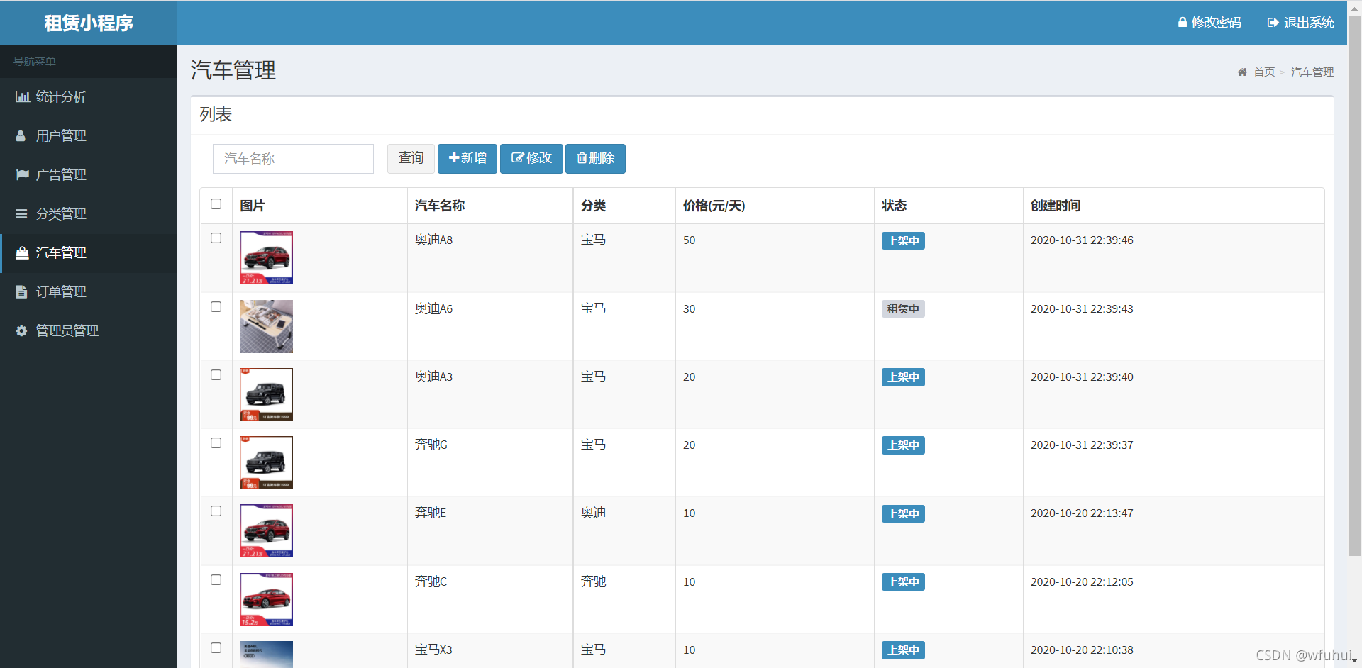 汽车管理:汽车增删改查以及上下架