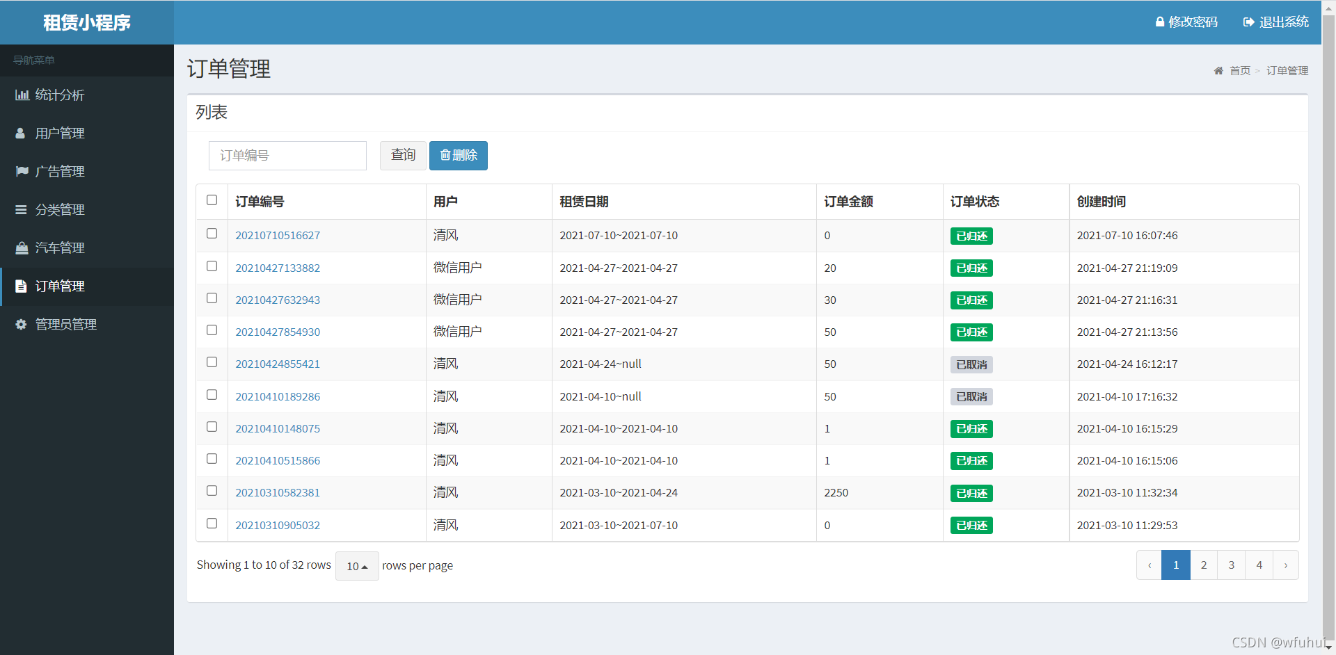用户管理:查看注册用户信息,及删除